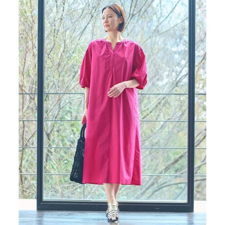 華やかなカラーが夏気分を盛り上げてくれるワンピース■デザインきれいめ素材でありながら、程よいカジュアルさと抜け感を感じるワンピースです。ボディラインを拾いにくいストンとしたシルエットに対して、ドロップショルダーとたっぷりとしたパフスリーブデザインのコントラストが女性らしさを感じるデザイン。共のベルトでウエストマークしてシルエット調整も可能です。シンプルながらも華やかなカラーが目を惹くワンピースです。