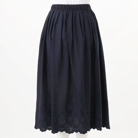 【大きいサイズレディース】刺繍レースコットンギャザーロングスカート