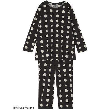 【パジャマ(ロング袖ロングパンツ)】クリエーター“俣野温子”氏がデザインする、甘くなりすぎない大人かわいいテキスタイルとカラーで、くつろぎ時間を楽しく過ごせるパジャマ&ルームウェア少しフシの見える生地感が特徴の、やさしい肌ざわりの天竺素材です。モノトーン調の柄をプリントで表現しました。※アイテムによって柄の出方が異なりますのでご了承ください。【サイズ詳細】M:バスト107.0cm 着丈70.0cm ズボン脇丈95.0cm ウエスト58.0cmL:バスト115.0cm 着丈70.0cm ズボン脇丈95.5cm ウエスト63.0cmLL:バスト123.0cm 着丈71.0cm ズボン脇丈96.0cm ウエスト68.0cm※出来上がり寸法を表示しております。※サイズ詳細の寸法には多少の差異がございます。