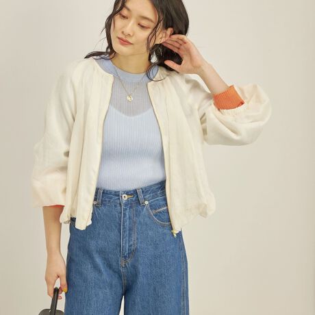 〈手洗い可能〉リネン ジップ ギャザー ブルゾン