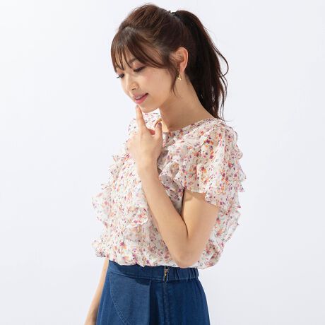 フリルにピンタック、小花が可愛いフェミニンなブラウス。
