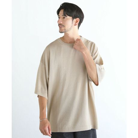 さらさらとした清涼感ある肌触りの接触冷感素材。涼しい着心地で、暑さからのストレスを感じにくくしてくれます。また、ざっくりとした編み地が外からの空気を取り入れてくれるので、汗ばむ季節も通気性が保たれ快適な着心地です。