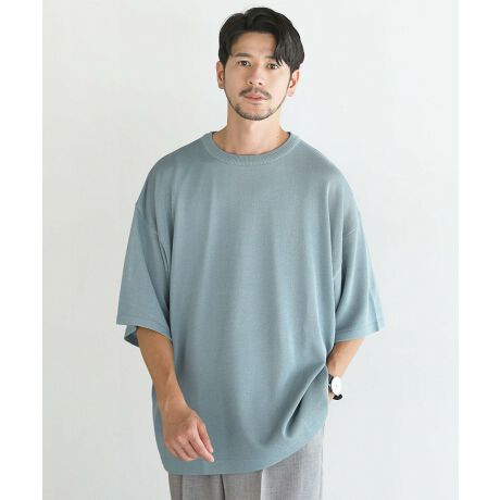 さらさらとした清涼感ある肌触りの接触冷感素材。涼しい着心地で、暑さからのストレスを感じにくくしてくれます。また、ざっくりとした編み地が外からの空気を取り入れてくれるので、汗ばむ季節も通気性が保たれ快適な着心地です。