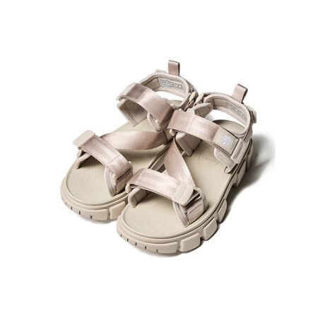 存在感のあるシートベルトタイプのストラップに、見た目にもポイントになるコマンドソールに着想を得たブロックパターンのSFソールでボリューム感を持たせた1足に仕上がっています。