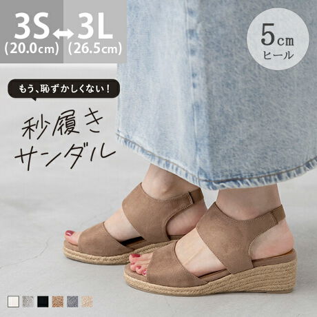『秒履き ゴムストラップ 5cmヒール ウェッジヒール ジュートサンダル』