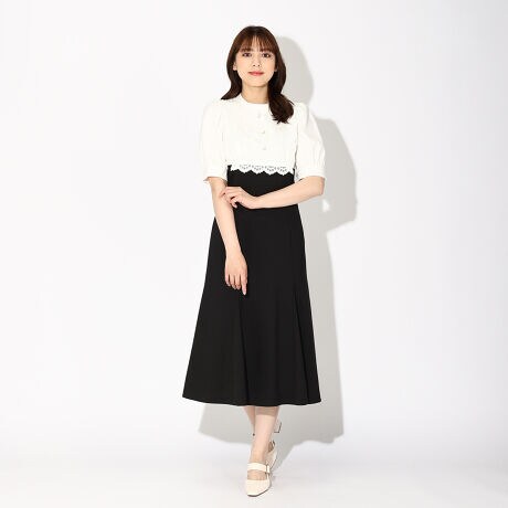 フロントレースがエレガントに映えるワンピース。クラシカルな雰囲気を漂わせ、大人の女性らしい印象を演出してくれます。高めのウエスト切替で脚長効果も発揮。優美なマーメイドシルエットも魅力的なポイントです。