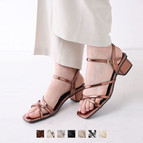 【26春夏新作カラー追加】スクエアトゥアシメ華奢アンクルストラップサンダル