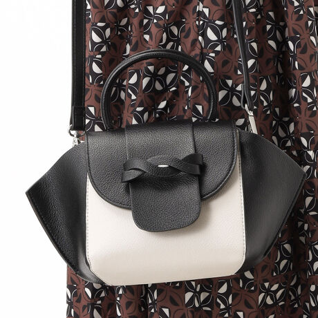 フラップ部分のツイストデザインがポイントになった2wayミニショルダー。