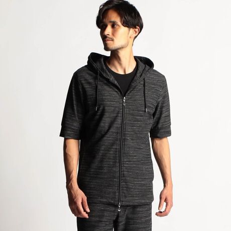 ポリエステルと綿糸の不規則な引き揃えと片染めにより、独特なメランジ感を表現したハニカムジャカ−ドを身生地に使用しています。軽く柔らかな風合いを活かしたフルジップアップパ−カを提案。5分袖のデザインを採用し、シ−ズンに合せたカラ−リングで展開します。デニムパンツ等との相性が良く、夏場にサラっと羽織れる一着です。ポリウレタン混によりストレッチ性も高めている為、快適な着用感も実現しています。同素材のショ−トパンツとセットアップ着用も可能です。メーカー品番/3264−9706同素材