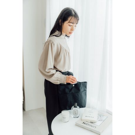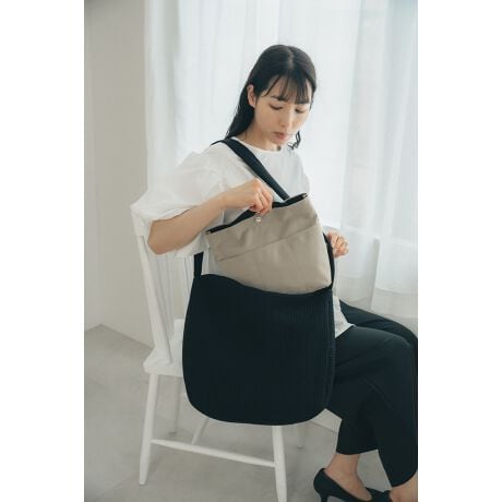 バッグインバッグとしても、職場でタオルやお茶を入れて持ち運ぶ小さいバッグとしても、サイズ感がちょうどよいです。ポケットも内外でたくさんあって機能的です。