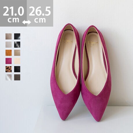 シンプルなフラットパンプスに、Vカットの履き口が足を華奢に演出。
