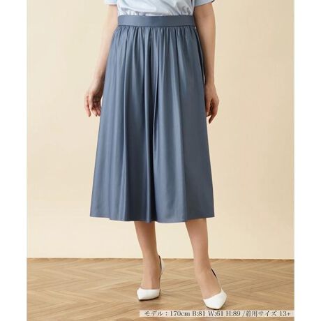 シルキーな光沢感のある素材を使用したミディ丈のフレアスカート。ウエストをシェイプしつつ、裾に向かって広がりをもたせたシルエットがエレガントな女性らしさを引き立てます。ギャザーをたっぷりと施し、柔らかなニュアンスに仕上げました。バックウエストはゴム仕様で心地よいフィット感をもたせています。シンプルなトップスを合わせるだけで、旬のフェミニンルックが完成します。サイドホック&ファスナー開閉可能。------------------------------------初夏なしなしなしやや薄手あり後ろのみゴム-------------------------------------※商品の色味は、撮影場所や光のあたり具合、お客様のお使いの機器により色味が違って見える場合がございます。予めご了承ください。my perfect wardrobe】スタイリスト・大沼こずえとエディター・発田美穂による「着映え」と「自分映え」のためのブランド「my perfect wardrobe(マイパーフェクトワードローブ)」いつもの毎日も、特別なお出かけの日も、コーディネートによってさまざまなシーンや気分に対応できるラインナップを提案。ラクに着られること、スタイルがよく見えることにもこだわった大人のためのワードローブです。※定価(税込)は、2023年06月29日のセール開始前の店舗における販売価格です。