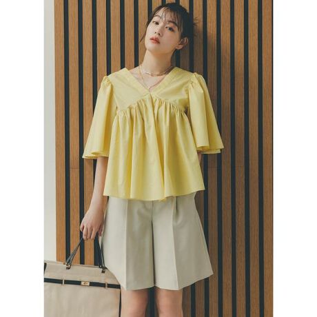 アシンメトリーなデザインの、片側につけたフラップのディテールがポイントです。