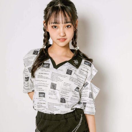 【 ニコ☆プチ 掲載 】ニュースペーパー柄カットTシャツ(130~160cm)
