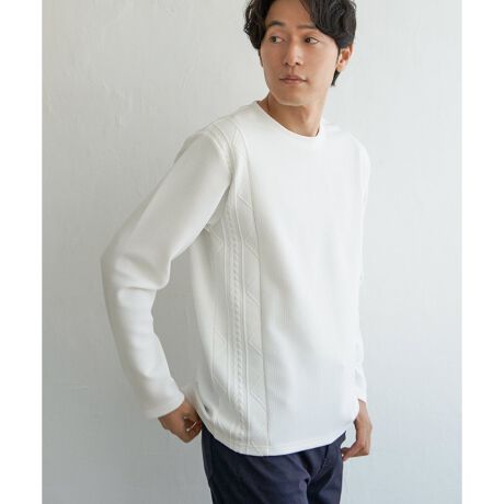「フクレジャガード」という凹凸感のあるジャガード素材を使用した長袖Tシャツ。