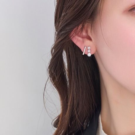 華奢なストレートラインと、縦に並べたパールとビジューがジュエリーライクなアイテム。