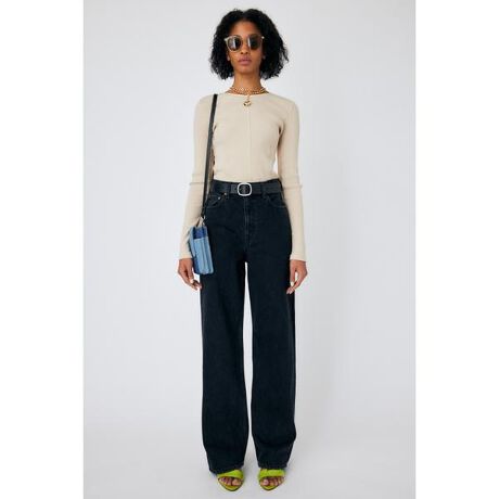 【HW 90S BLK STRAIGHT】コンパクトなトップスに華奢なチェーンネックレスとピアスを合わせるだけで、90年代のアイコンのように穿くことのできるデニムをイメージしています。ハイウエストで脚のシルエットは太すぎないストレート。裾は甲に被るくらい、少しゆったり長めに穿くのがおすすめです。肌のトーンに合う色目で馴染んだようなUSED感のあるブラックは、カジュアルにもクラシックにも穿きこなせるワードローブに揃えておきたい1本。本品は、素材特性上以下の点にご注意ください。・着用や洗濯につれ退色し、独特な色変化が生じる場合がございます。・雨や汗等の湿った状態、着用や洗濯、クリーニングによって他の衣類、雑貨、家具等に色落ちする可能性がございます。・白・淡色との組み合わせはお避け下さい。・淡色は光(紫外線)に弱いため変色する場合がございます。直射日光や蛍光灯の光に長時間さらさないようご注意下さい。・クラッシュやダメージ加工の製品は、着用や洗濯につれて加工箇所の広がりが生じる場合がございますがご了承下さい。・着用や洗濯につれ多少の縮みやネジレ(製品がねじれて見える状態)が生じる場合がございます。・ボタンやリベットなどの金属部分を使用している場合は突起部分で人体や対象物にキズを負わせる恐れがございますのでご注意下さい。ストレートデニム