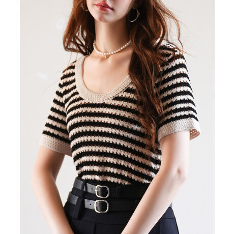 クープネックボーダーサマーニット