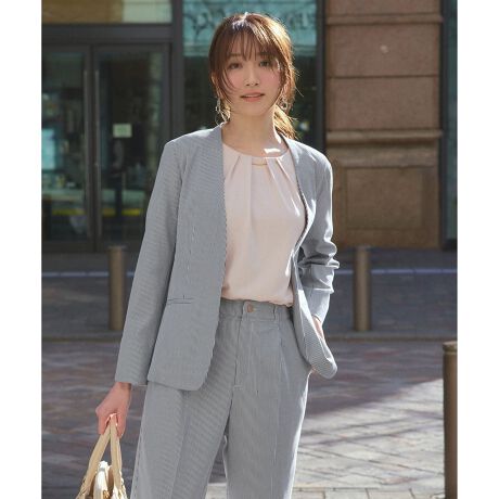 #anySiS #エニシス #エニィシス #エニスィス #レディース #ジャケット #ノーカラージャケット #きれいめ #きれいめコーデ #オフィスコーデ #オフィスカジュアル #通勤コーデ #お仕事コーデ #シンプル #大人レディ #フェミニン #レディスタイル #洗える #ウォッシャブル #ストライプ