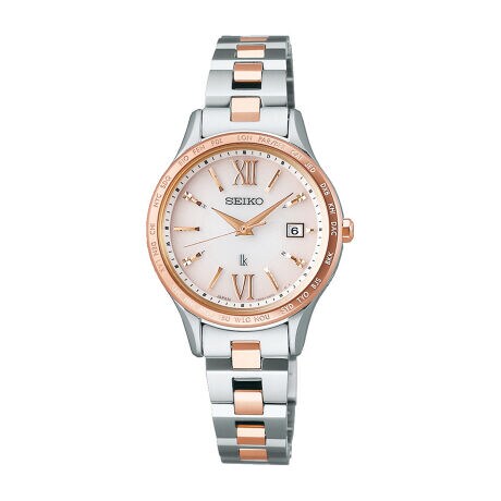 現行のルキア・ワールドタイム付ソーラー電波の中では最もコンパクトなケース(径27mm、厚7.6mm)、ブレスレットも細みのシルエット(本体駒10mm)でワーキングシーンでも邪魔にならず女性らしく身に着けていただけます。