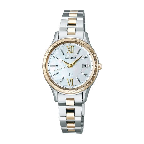 現行のルキア・ワールドタイム付ソーラー電波の中では最もコンパクトなケース(径27.5mm、厚7.6mm)、ブレスレットも細みのシルエット(本体駒10mm)でワーキングシーンでも邪魔にならず女性らしく身に着けていただけます。