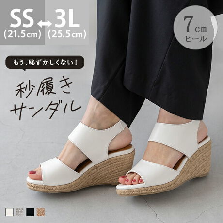 『秒履き ゴムストラップ 7cmヒール ウェッジヒール ジュートサンダル』