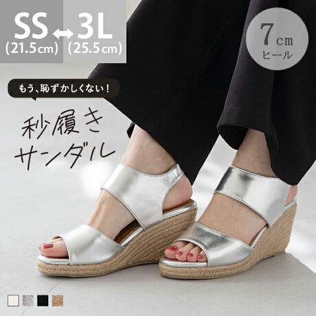 『秒履き ゴムストラップ 7cmヒール ウェッジヒール ジュートサンダル』