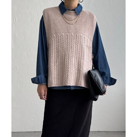 ニットらしい風合いのラムウールを使用した、LBC 冬提案のニットベストです。