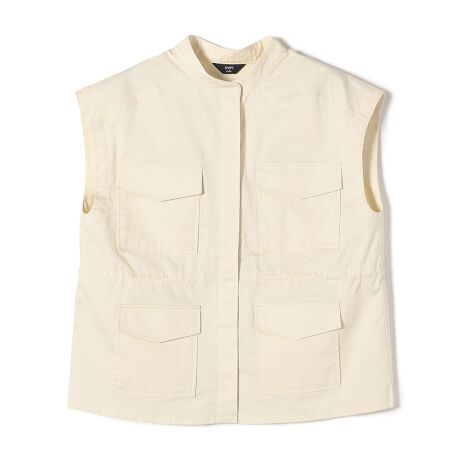 シンプルなコーディネートにプラスすると、一気にこなれた印象になるミリタリーベスト。