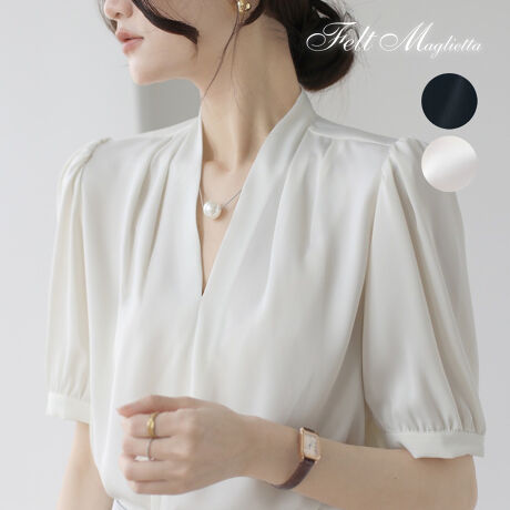 【お仕事でも活躍】ボリューム袖タック入りブラウス