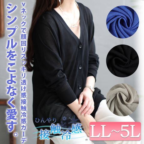 【大きいサイズ】 接触冷感シアーニットVネックカーディガン 大きいサイズ レディース トップス 長袖