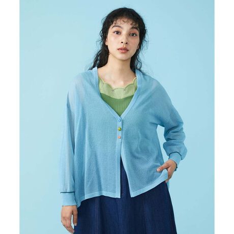 シンプルで着回し力に優れたニットカーディガン。暑い季節にも快適にお召しいただける清涼感のあるアイテムに仕上がっています。ゆったりしたシルエットがストレスフリーな着心地を実現。すっきり見えを叶えるVネックも嬉しいポイントです。後ろ丈はヒップまで隠れる長さなので、どんなボトムでも安心してお召しいただけます。ホコモモラならではの配色ボタンや、前立ての裏・袖口に施した配色は注目間違いなしの褒められポイントに。使いやすい無地の二色と夏らしいボーダーの三色展開です。軽い着用感のシアーカーディガンは、夏のコーディネートのマストハブアイテムです。