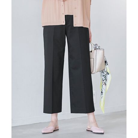 ■デザイン脚のラインが美しく見えるようにこだわったクロップド丈のワイドパンツです。ワイドなシルエットながらすっきりとしたラインで、様々なシューズとバランスよく合わせられる着丈に仕上げました。キレイめにもカジュアルにも着て頂けます。