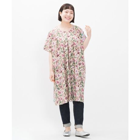 素材感は薄く汗をすいとりやすく感じます。ちょっと透けます。すごくお花模様が可愛い。夏にぴったりのワンピースです。