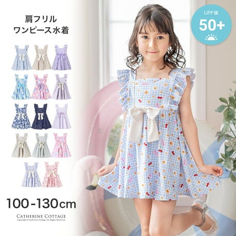 ガーリーデザインのキッズ女の子ワンピース型水着!