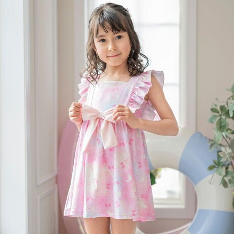ガーリーデザインのキッズ女の子ワンピース型水着!