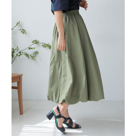 旬なバルーンシルエットのスカートに、カジュアルなミリタリー調のサイドポケットをつけて、ハリのある素材で仕上げることで、どんなテイストにもハマる、スポーティで女性らしい雰囲気の一着が仕上がりました。足首がスッキリ覗く丈感で、スタイリングにメリハリを演出してくれます。上品さも兼ねそろえ、丸みが出過ぎないシルエットなので、バルーンスカートに挑戦したことがない方にもオススメです。