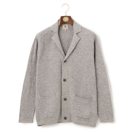 ■デザイン着廻しのきき易いカーディガンジャケットデザイン。身頃はハニカム調の組織、袖はカノコ調の組織にし、変化を加えています。■素材綿ポリエステルの強捻素材で、素材がさらっと清涼感があり、SSシーズンに適した素材感となっています。またリンクス編みという表目と裏目を使って編みこむ手法を使って編地の凹凸感を表現しています。