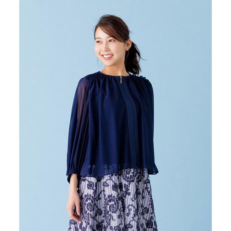 ボリュームスリーブがトレンドライクな表情を生み出すノーカラージップジャケット。表裏にシアーな素材を重ねた涼やかな風合いがこれからの季節にぴったり。袖口はゴム仕様で心地よいフィット感をもたせました。シックで落ち着いたカラーでまとめているので合わせやすく、シンプルなカットソーに重ねるだけで洗練したコーディネートに仕上がります。------------------------------------夏ありありなし薄手ウォッシャブル(手洗い可)あり-------------------------------------※商品の色味は、撮影場所や光のあたり具合、お客様のお使いの機器により色味が違って見える場合がございます。予めご了承ください。※定価(税込)は、2023年06月29日のセール開始前の店舗における販売価格です。