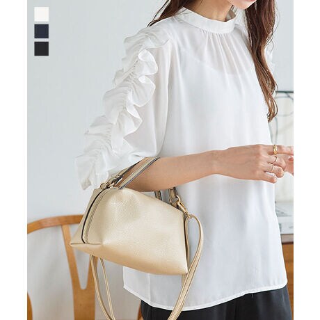 袖フリルデザインが目を惹く主役見えブラウス。