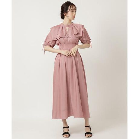 ステッチと胸元のカットアウトがポイントの華やかなデニムワンピース【Design】・1枚でコーディネートが完成する大人かわいいワンピース。・ウエスト部分にタックが入っているので女性らしい美しいシルエットを演出。・バックウエスト部分はレースアップ仕様となっており、お好みに合わせてサイズ調節が可能です。・袖口のリボンがさりげなく可愛らしさをプラス♪・後ろボタン留め、バックファスナー仕様。【Fabic】・ハリがあり、肌触りの良い素材を使用。・ピンク、ブルー、インディゴの3色展開となります。【Care】ドライクリーニング