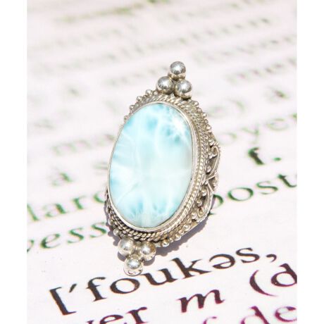 【フランス買付1点もの】ラリマー楕円装飾リング(スターリングシルバー)