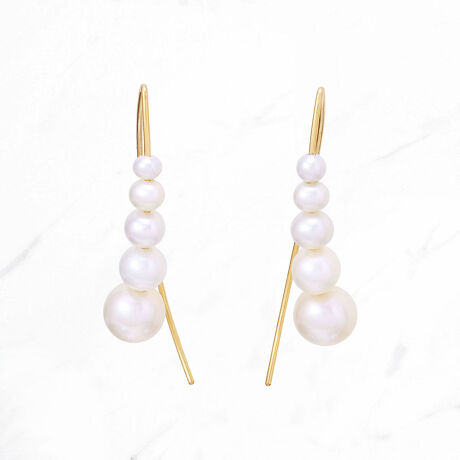 サイズグラデーションに配置したパールが滴るしずくを思わせるのフックピアスフック自体にも少し捻りを加えたデザインで、どこから見ても立体的な構造に。耳元に軽やかな動きが生まれるピアスです。
