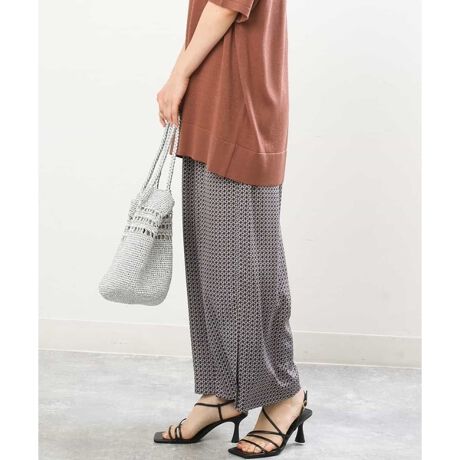 細かな幾何柄が印象的なプリントパンツ。サイドのベンツ開きで抜け感のある印象に仕上げました。ウエストは後ろ部分がゴム仕様のストレスフリーな着心地に。