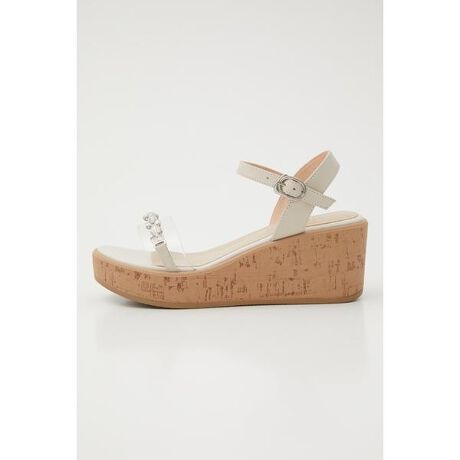 透明感ある雰囲気のウェッジヒールサンダル。PVC上にはパールとビーズをあしらった、さり気なくフェミニンで涼しげ。軽量かつ高低差を感じにくいコルク風ソールも夏らしい印象に。※パール・ストーン装飾の引っ掛けや衝撃等にご注意ください。