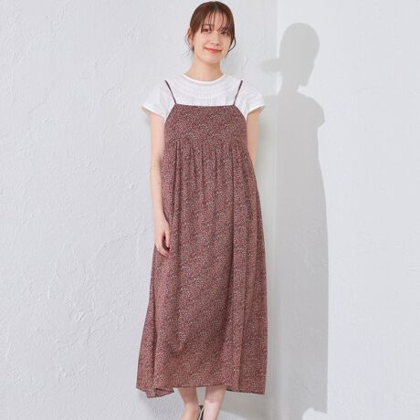 <リバティ柄を用いたトレンド感のあるキャミワンピース>