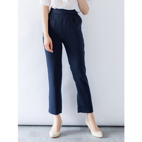 センタープレスがきちんと感を演出し、すっきり縦長に美脚ラインを演出するデザイン。