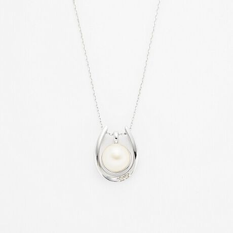 あこや真珠をホワイトゴールドで包み込み、どこかクラシカルな雰囲気のネックレス。