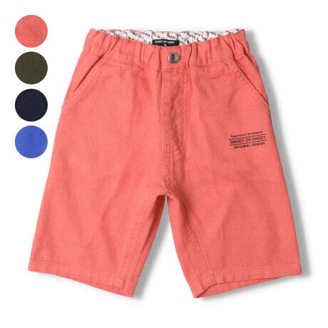 凹凸感があり、汗がはりつきにくく、綿100%でも麻混のような風合いのプリペラ素材。夏におすすめな素材のハーフパンツ。膝丈5分丈。無地デザインでどんなアイテムとも合わせやすい!さりげなくロゴのプリント入り!同じデザインのスクールサイズ(150160cm)はV31121になります。【アイテム】シンプル ベーシック 無地 カジュアル お洒落 オシャレ かっこいい かわいい 可愛い 普段着 お外着 お外遊び着 デイリーウェア お出かけ着 ハーフパンツ 短パン 半パン ボトムス 半ズボン 子ども こども 男児 男の子 ボーイズ キッズ ベビーサイズ トドラーサイズ 幼稚園 保育園 小学校 通園 通学 小学生 2023年夏物新作 丸高衣料 ピンク カーキグリーン 深緑色 コン ネイビー 紺色 ブルー 青色 ダディオダディ コットン100% 綿100%