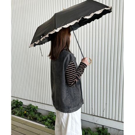 【紫外線遮蔽率、遮光率99.9%以上晴雨兼用日傘折りたたみ傘UVカット熱中症対策】バイカラーフリル